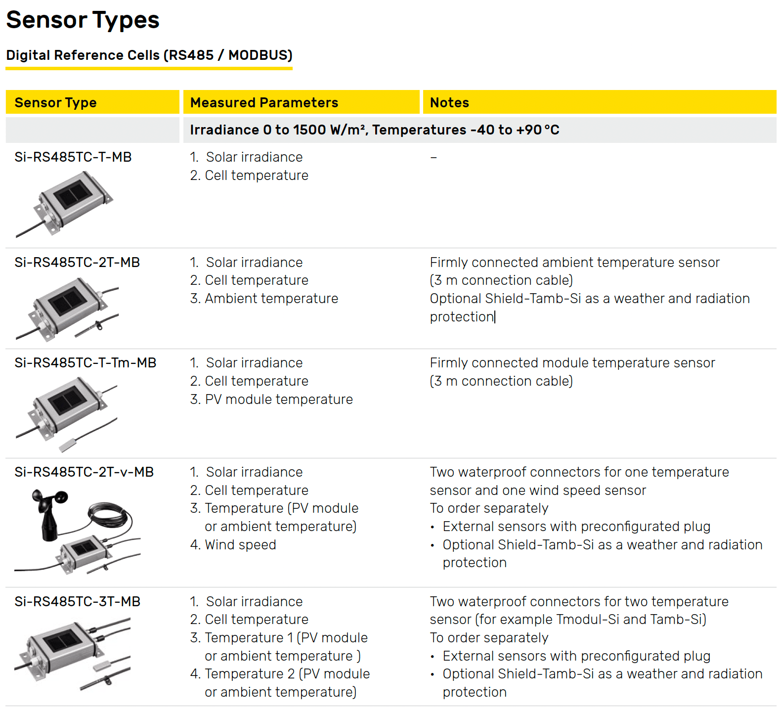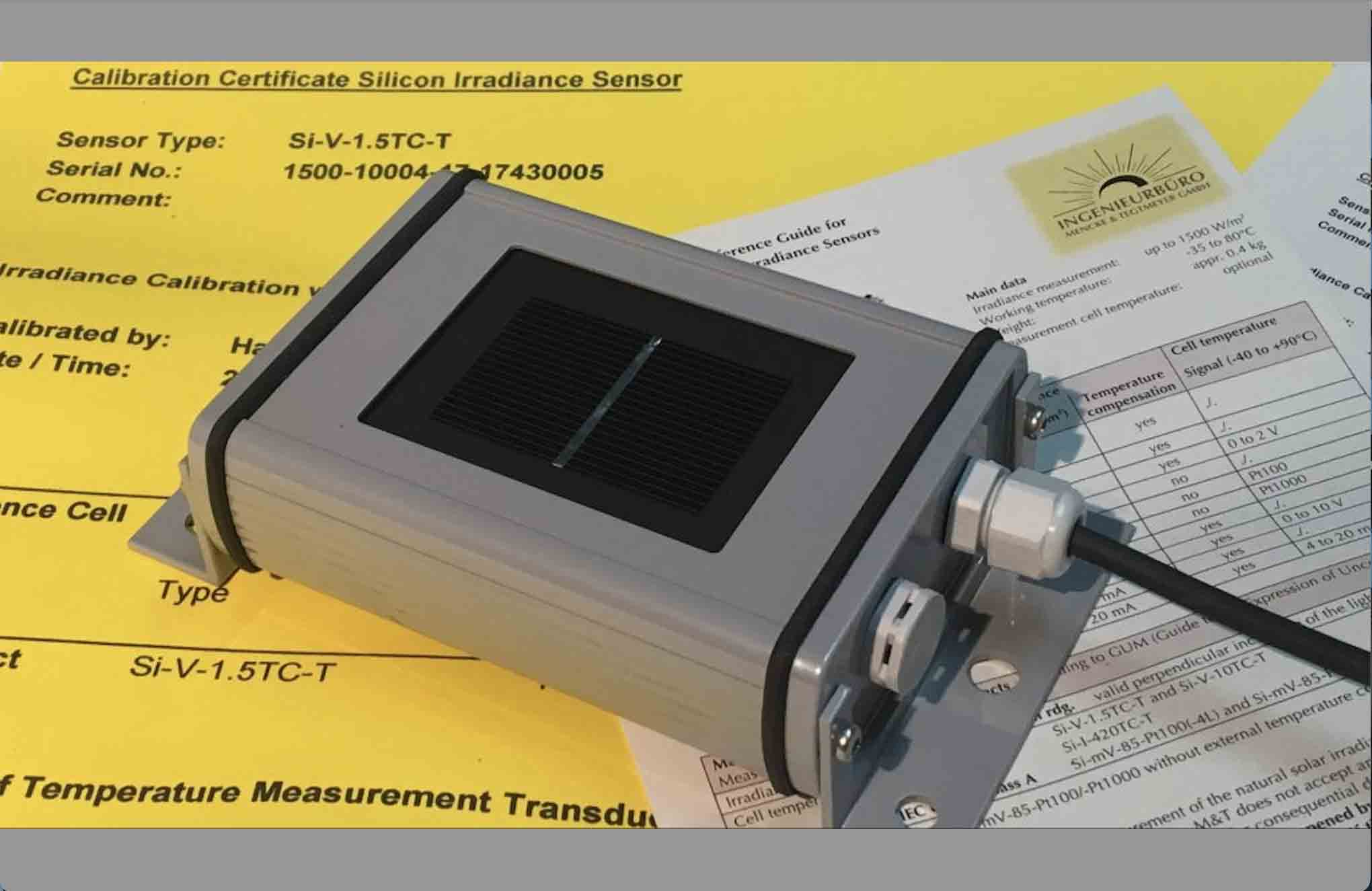 Pin mặt trời silicon có thể được sử dụng làm cảm biến bức xạ, vì dòng điện ngắn mạch tỷ lệ thuận với bức xạ. Cảm biến của chúng tôi được chế tạo từ pin mặt trời Si đơn tinh thể chất lượng cao được kết nối với một mạch. Do điện trở mạch thấp, pin hoạt động gần với ngắn mạch. Để giảm thiểu ảnh hưởng của nhiệt độ lên tín hiệu đo, tất cả các cảm biến của chúng tôi với phần mở rộng „TC“ đều có chức năng bù nhiệt độ chủ động thông qua một cảm biến nhiệt độ được dán trên bề mặt sau của pin mặt trời. Tất cả các cảm biến đều được hiệu chuẩn dưới ánh sáng mặt trời nhân tạo so với một cell tham chiếu được hiệu chuẩn bởi Viện Đo lường Quốc gia Đức (PTB).